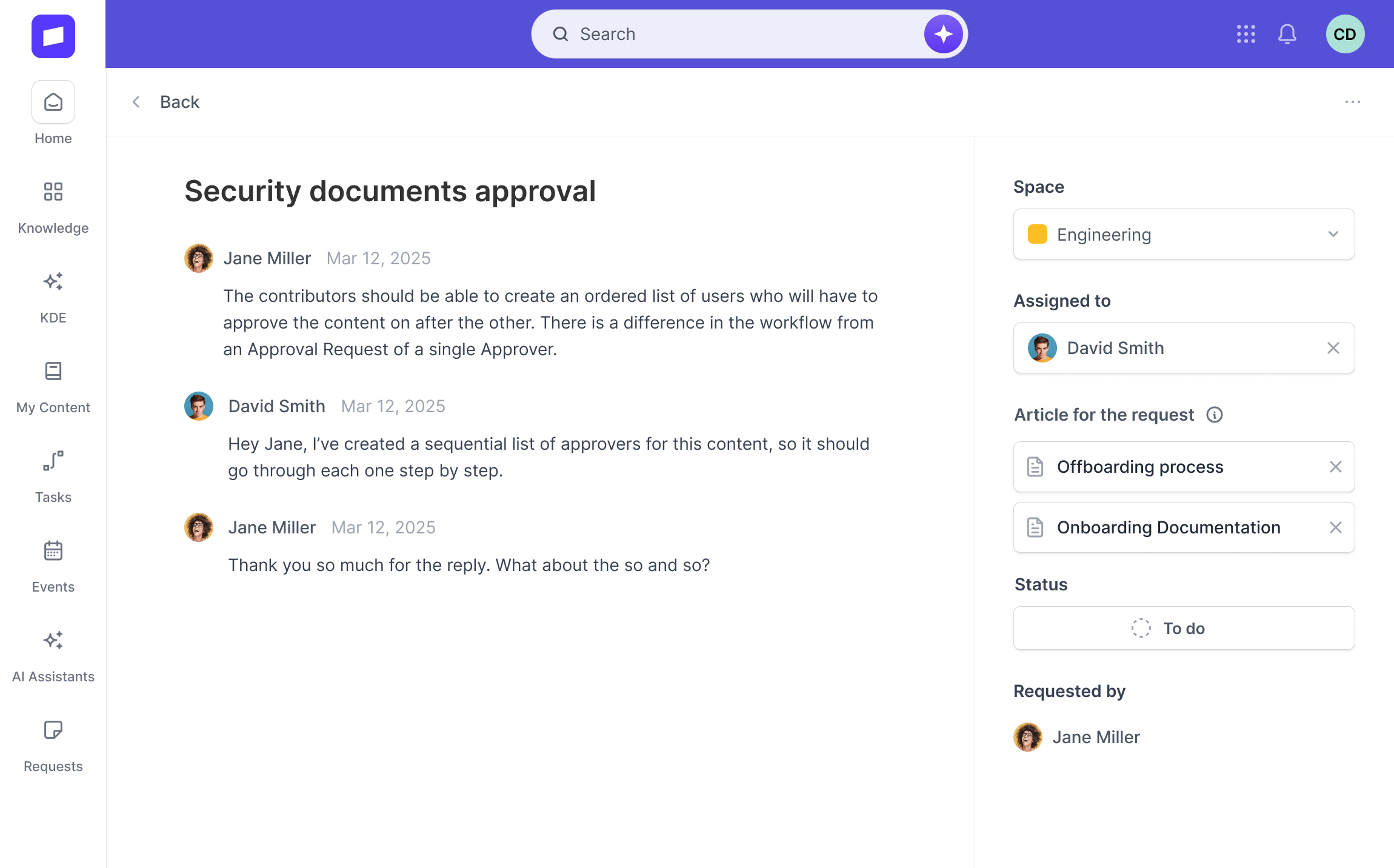 Shared knowledge model, indexing, permissions, and governance.